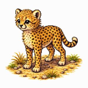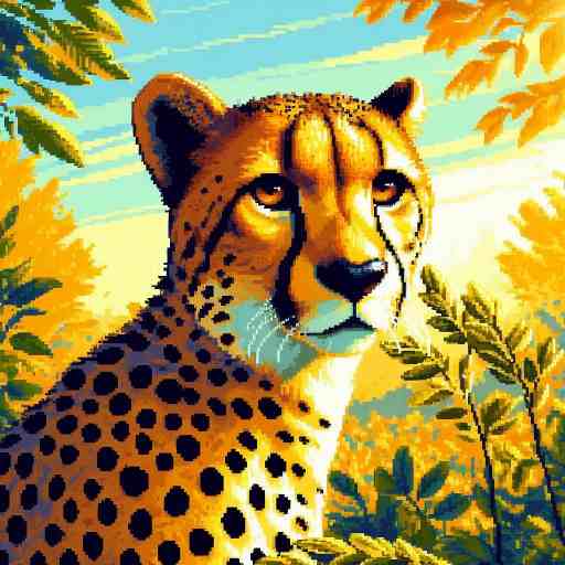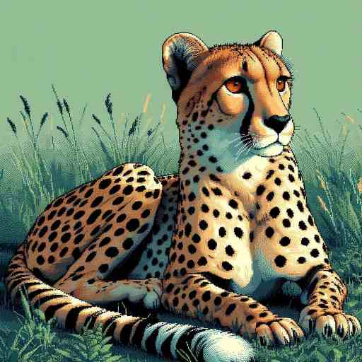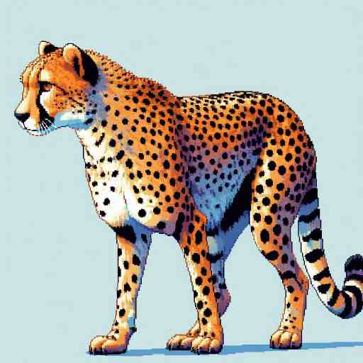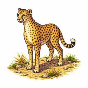 チーターは、地上で最も速く走る動物として知られている。細長い体と長い足、そして半分出たままの爪が、短い距離での加速を助ける。全力で走ると時速100km近くに達することもあり、まるで風のように草原をかけぬける。
