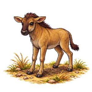 ヌーはアフリカの広い草原に住む大型の草食動物で、牛のような頭と馬のような体をあわせ持つ少しふしぎな見た目をしている。