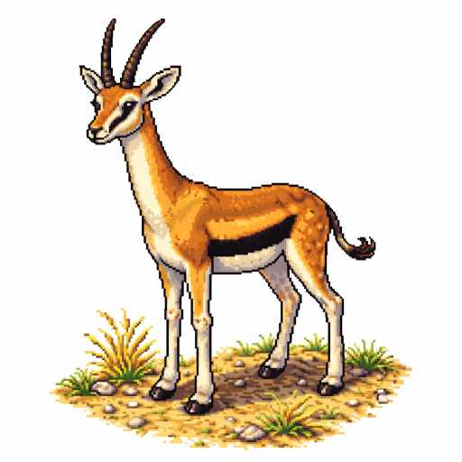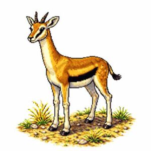 草原をすばやく走る小型の草食動物。危険な攻撃はほとんどせず警戒心も強い。捕食者から逃げるため時速80kmほどで走る俊足が最大の特徴。