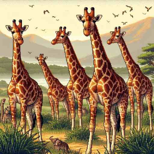 群れで行動することが多く、雌たちは協力して子どもを守る。子は生まれてすぐ立ち上がり、数時間で歩けるようになる。危険を感じると高い視点をいかして外敵を早く見つけ、群れ全体でゆっくりと安全な場所へ移動する。