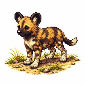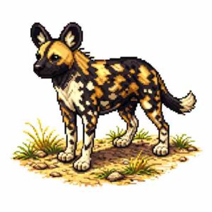 とてもまれに体の黒い部分が多く、ほとんど黒に見えるリカオンが観察されることがある。通常は白や茶色のまだら模様がはっきりしているが、この個体は黒色が強く模様が目立ちにくい。自然界では確認例が少なく、野生動物の観察記録でも珍しい存在として紹介されている。
